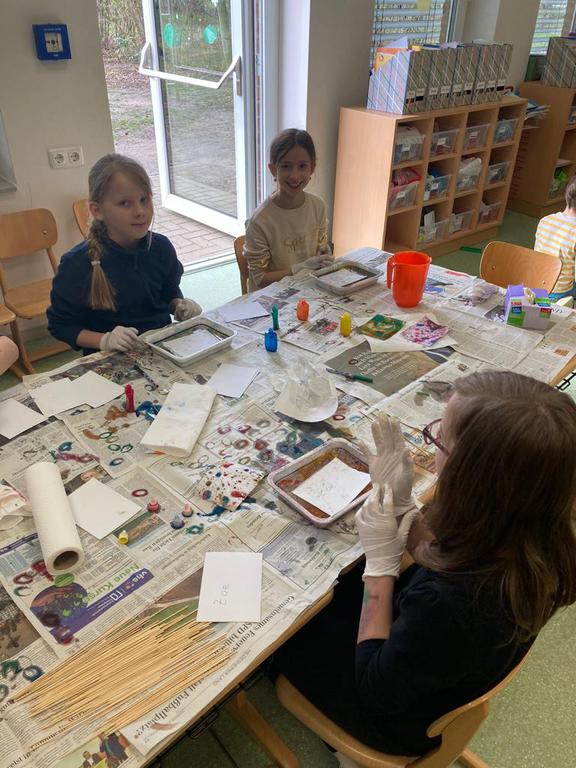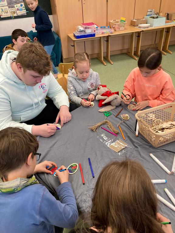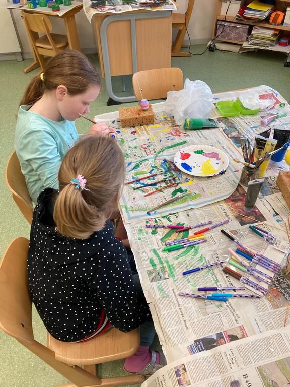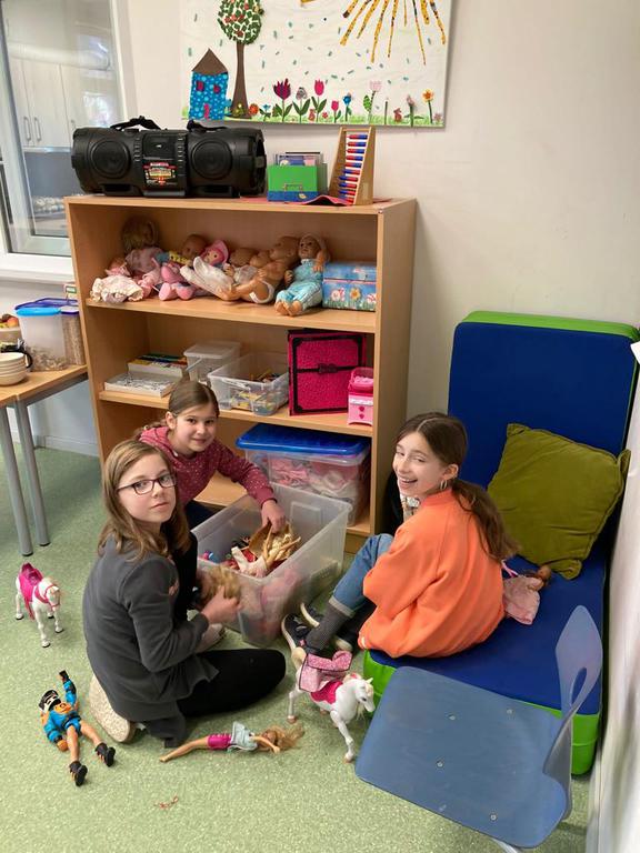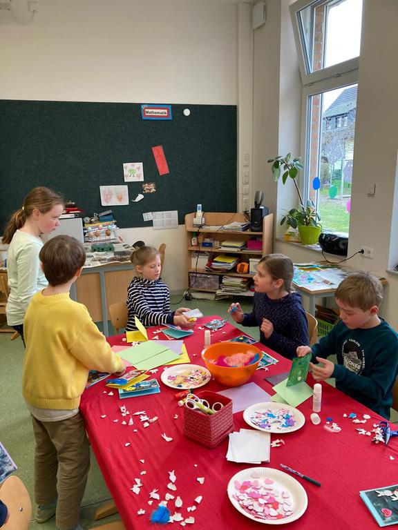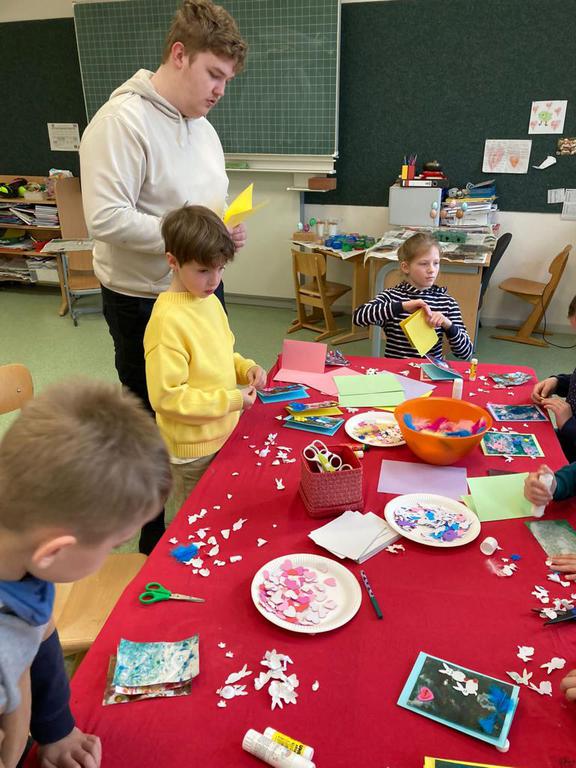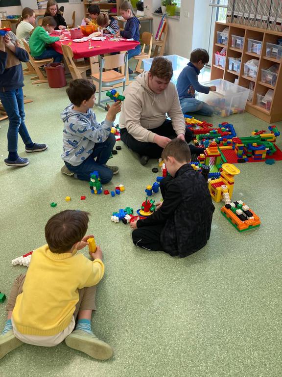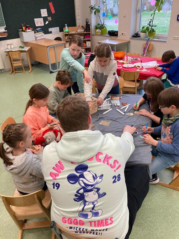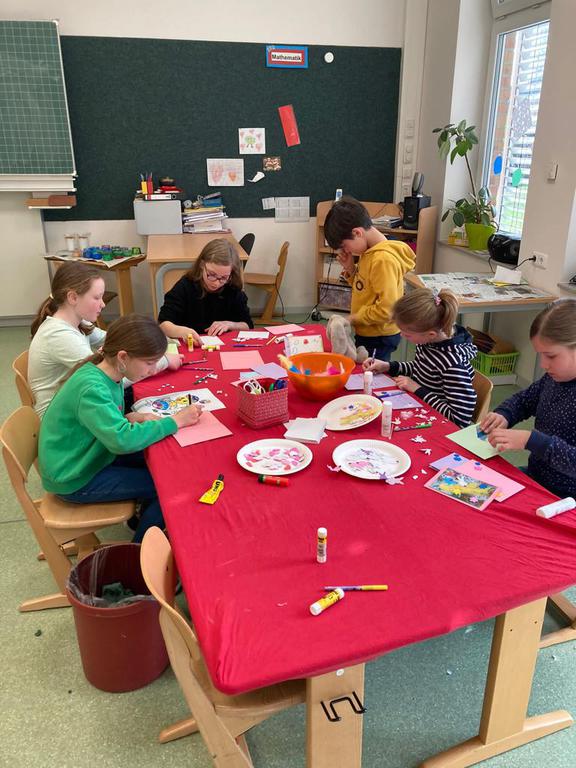Wir betreuen das Mittagessen und es gibt viele Spielzeiten mit gemeinsamen Spielen oder Basteln.